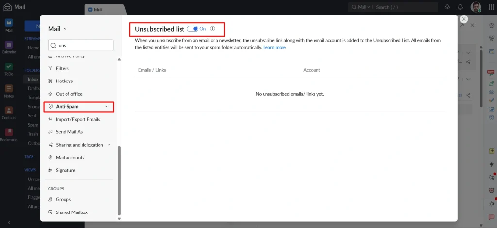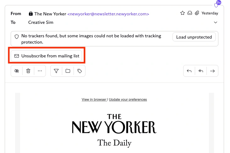 Smaller or privacy-focused providers like ProtonMail and Zoho Mail may not have one-click unsubscribe buttons available. In those cases: