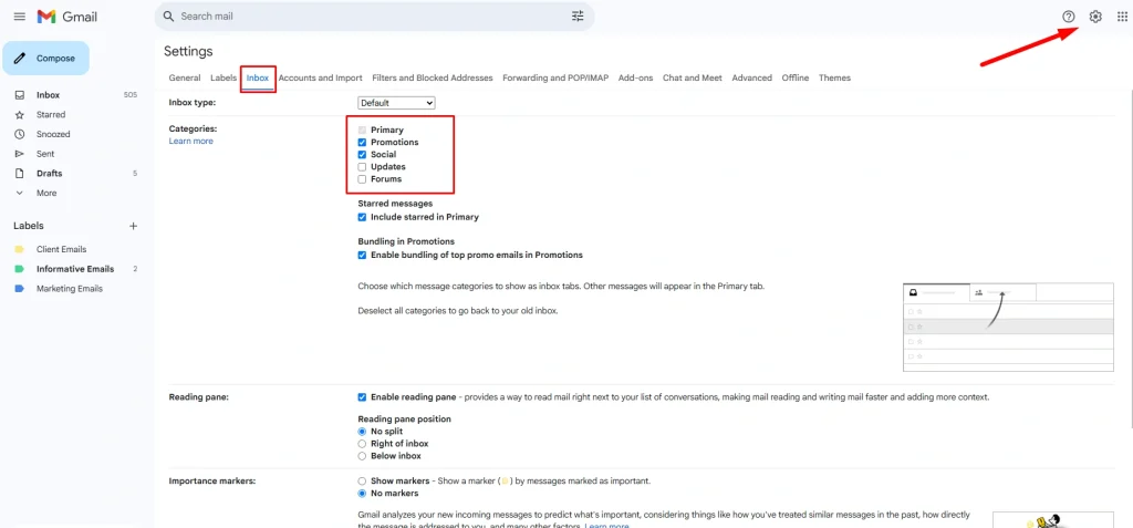 Your main inbox remains spotless and receives only important or personal messages. Just tick that box to make the secondary inbox deal with promotions, updates, and things that you don’t check on a daily basis.