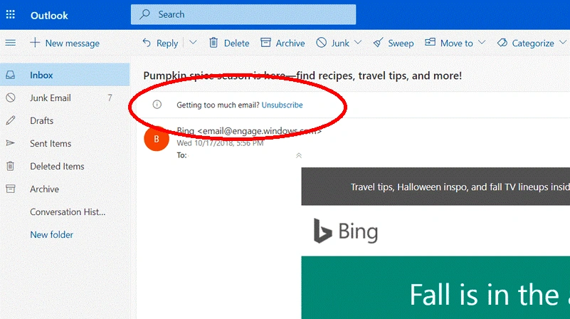 Microsoft Outlook also offers an effortless unsubscribe link for its users, whether you’re on Outlook or the desktop app.