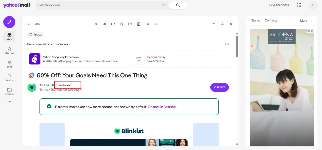 Yahoo Mail even comes with a convenient one-click unsubscribe button right there in the webmail interface.